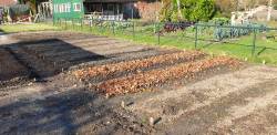 Bij Rico hadden we houtschaafsel gekregen en dit over de reeds 'ontgonnen' delen gestrooid.